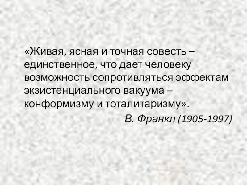 сопротивляться эффектам экзистенциального вакуума – конформизму и тоталитаризму».