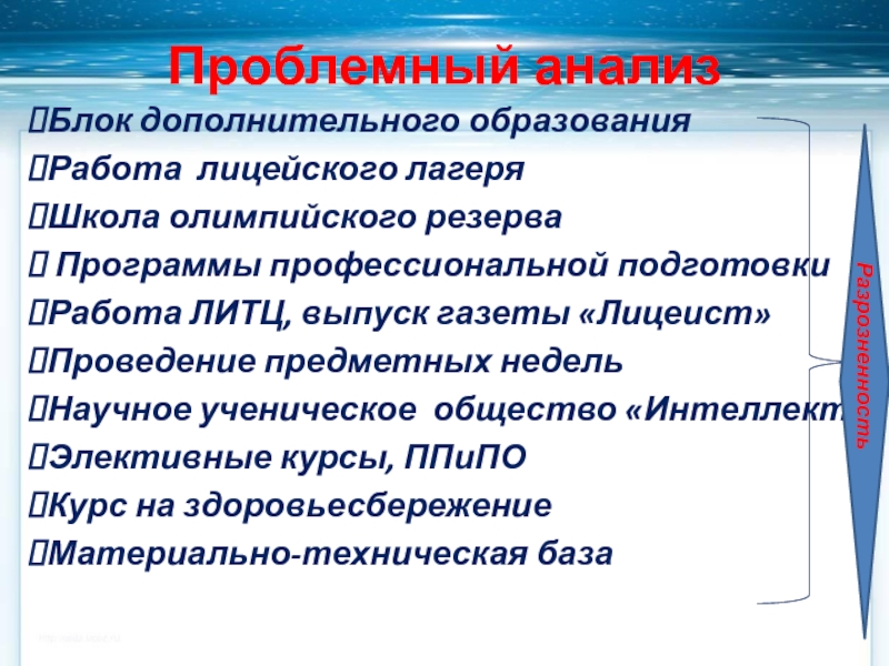 Это сайт презентаций, где можно хранить и обмениваться своими презентациями, докладами, проектами, шаблонами в формате PowerPoint с другими пользователями. Мы помогаем школьникам, студентам, учителям, преподавателям хранить и обмениваться учебными материалами.