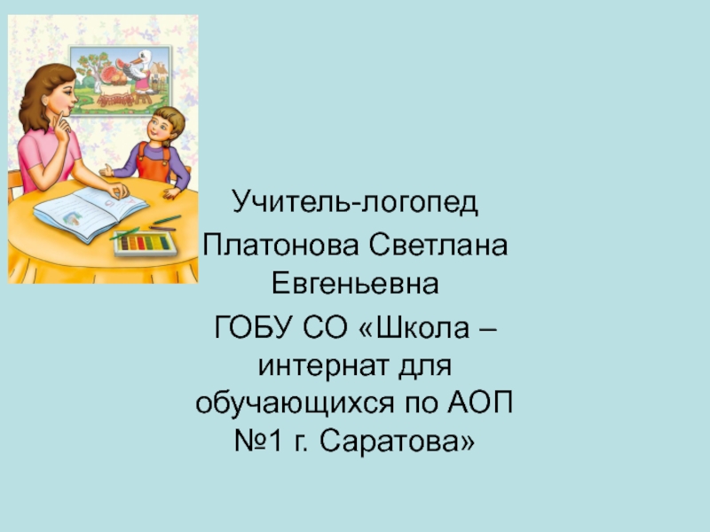 Учитель-логопедПлатонова Светлана ЕвгеньевнаГОБУ СО «Школа –интернат для обучающихся по АОП №1 г. Саратова»