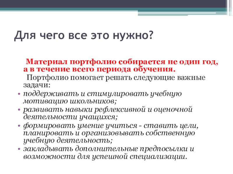 Слайд 6Для чего ученику портфолио?