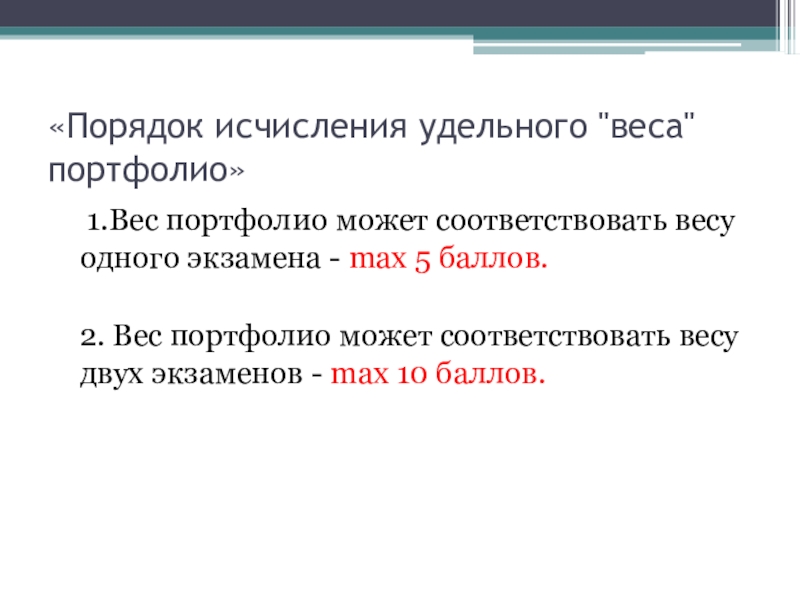 Слайд 9«Порядок исчисления удельного "веса" портфолио»