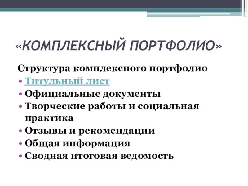 Слайд 21«КОМПЛЕКСНЫЙ ПОРТФОЛИО»