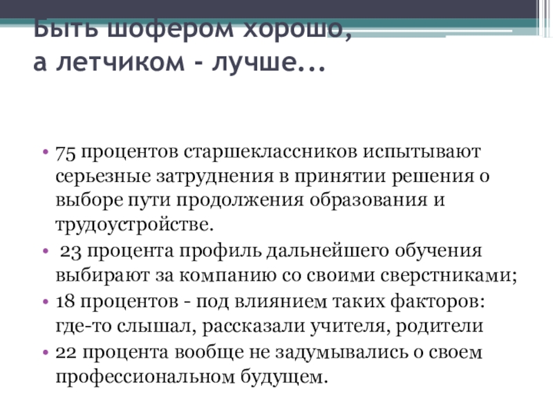 Слайд 5Быть шофером хорошо,
