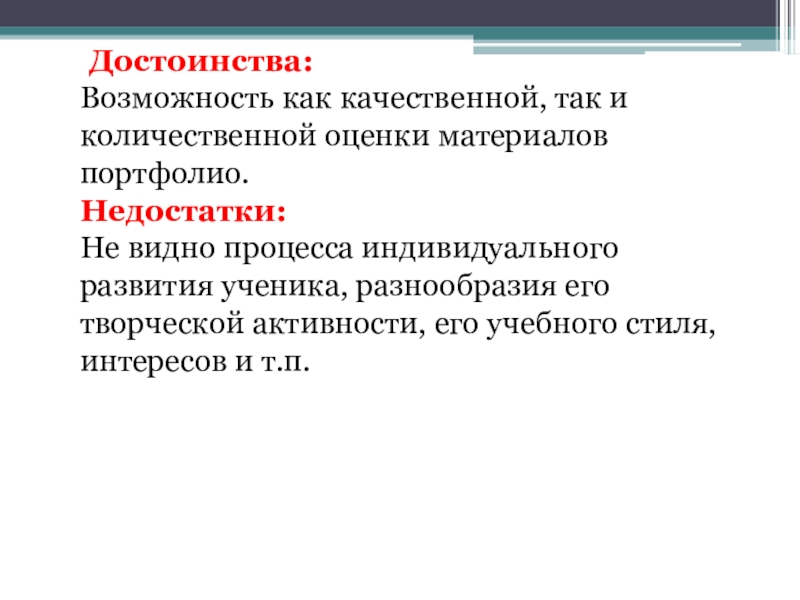 Возможность как качественной, так и количественной оценки материалов портфолио.