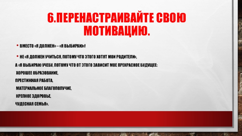 а «я выбираю учебу, потому что от этого зависит мое прекрасное будущее: