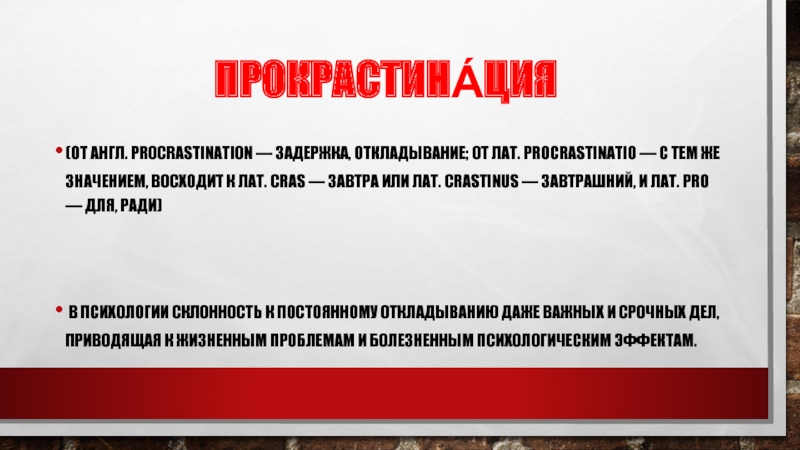 (от англ. procrastination — задержка, откладывание; от лат. procrastinatio —