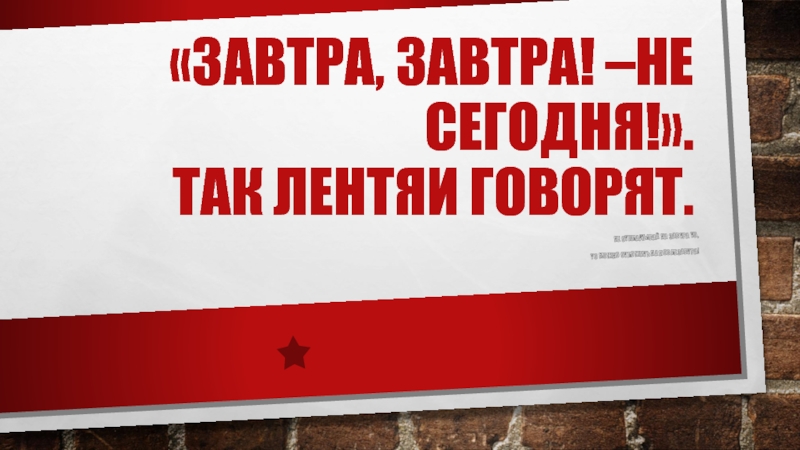 Слайд 2«Завтра, завтра! –не сегодня!».