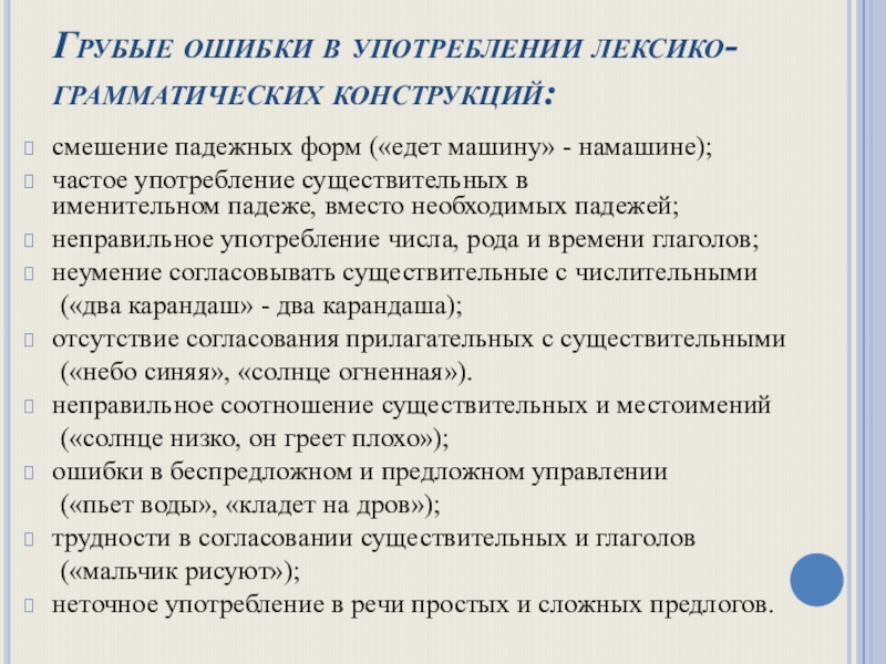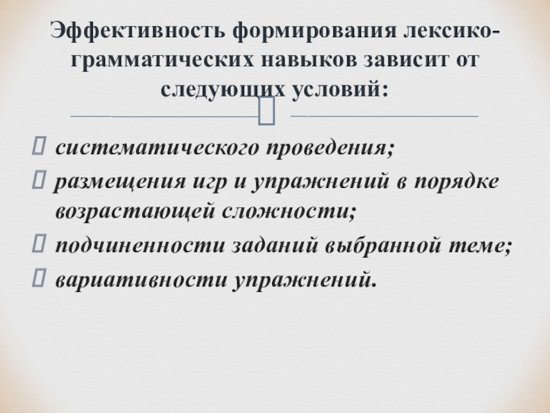Эффективность формирования лексико-грамматических навыков зависит от следующих условий: