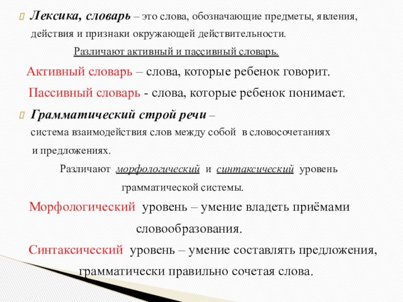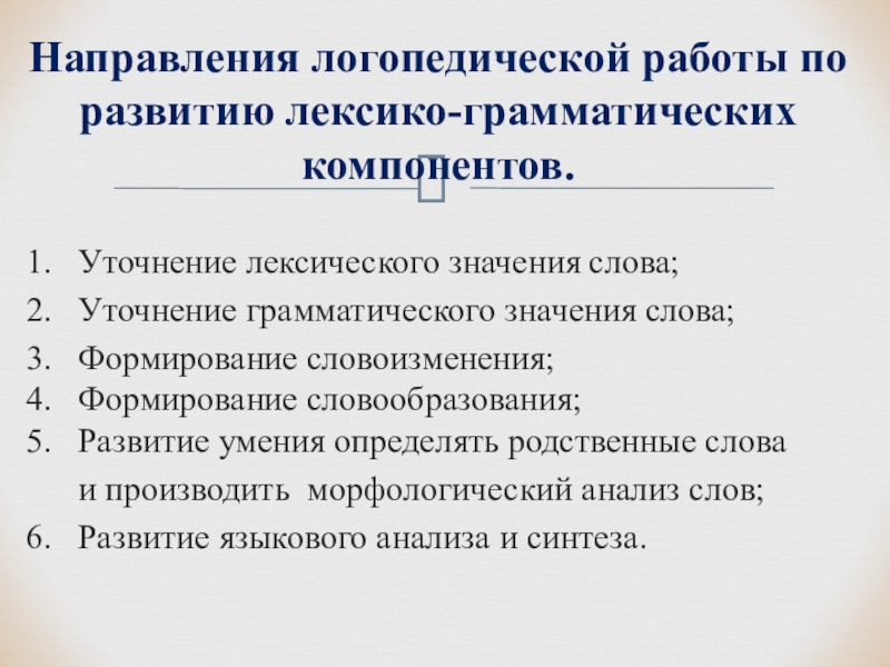 Направления логопедической работы по развитию лексико-грамматических компонентов.