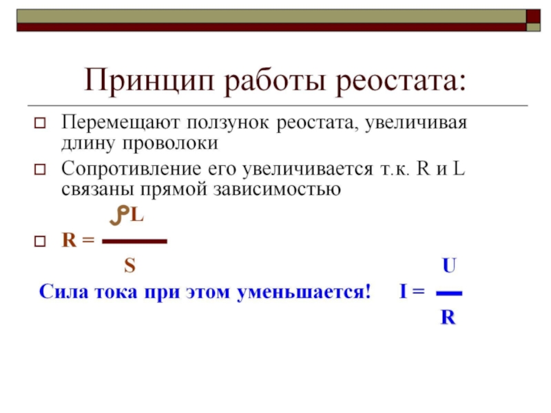 Слайд 4Реостат – это прибор, в котором можно изменять сопротивление