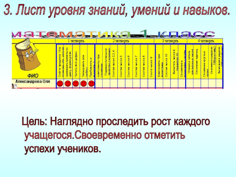 1.Своевременно отмечать успехи каждого учащегося; 2.Проследить индивидуальный рост успешности учащегося;