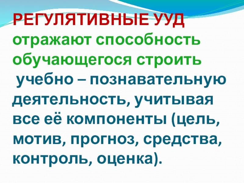 Слайд 9РЕГУЛЯТИВНЫЕ УУД отражают способность обучающегося строить