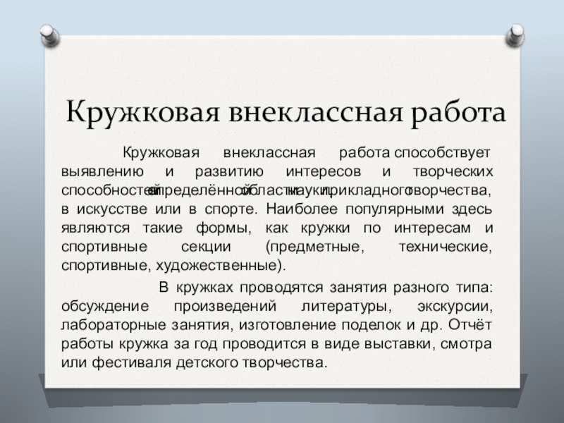 Кружковая внеклассная работа способствует выявлению и развитию интересов