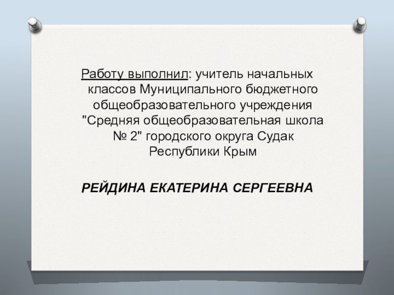 Слайд 50Работу выполнил: учитель начальных классов Муниципального бюджетного общеобразовательного учреждения