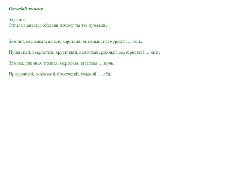 День зимой (какой?) - … зимний, морозный, ясный, короткий,