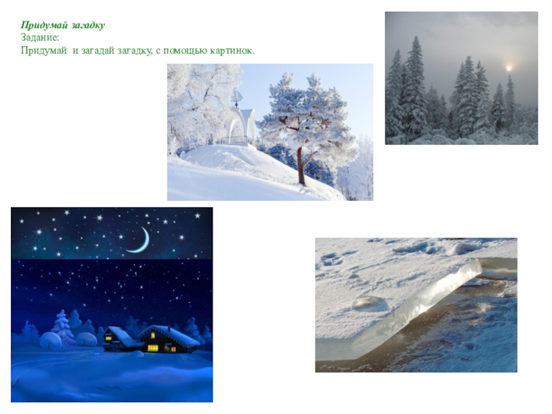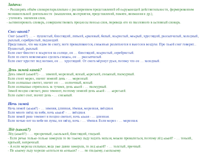 Снег (какой?) … – пушистый, блестящий, липкий, красивый, белый, искристый,