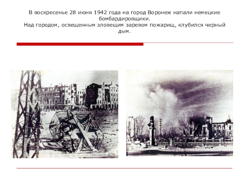 Слайд 4В воскресенье 28 июня 1942 года на город Воронеж напали немецкие