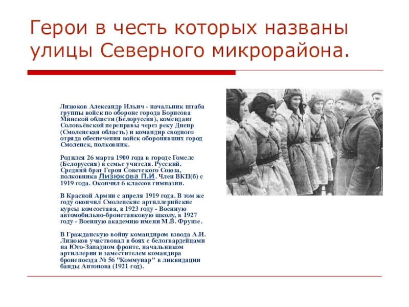 Слайд 14Герои в честь которых названы улицы Северного микрорайона.