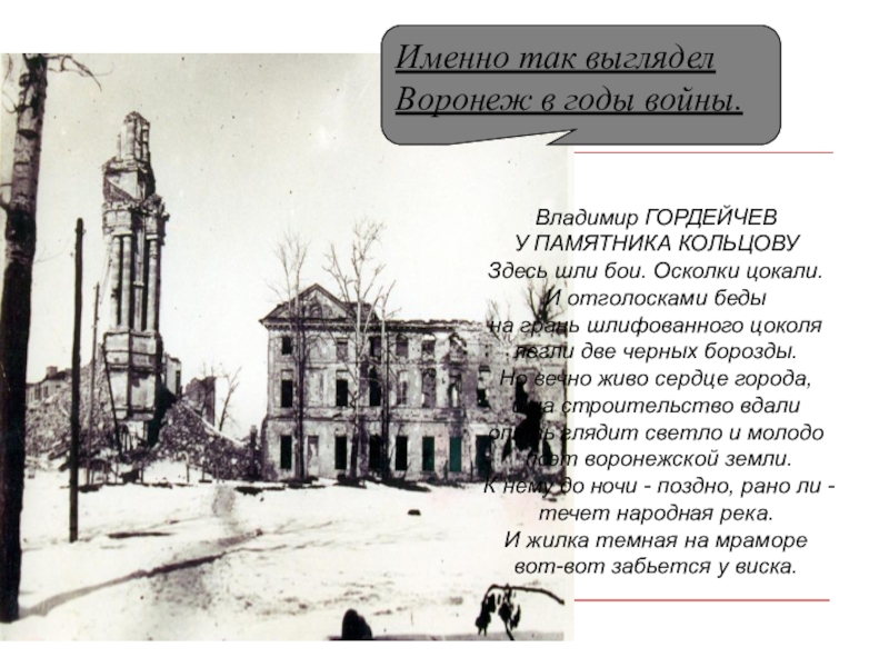 Слайд 5Именно так выглядел Воронеж в годы войны.