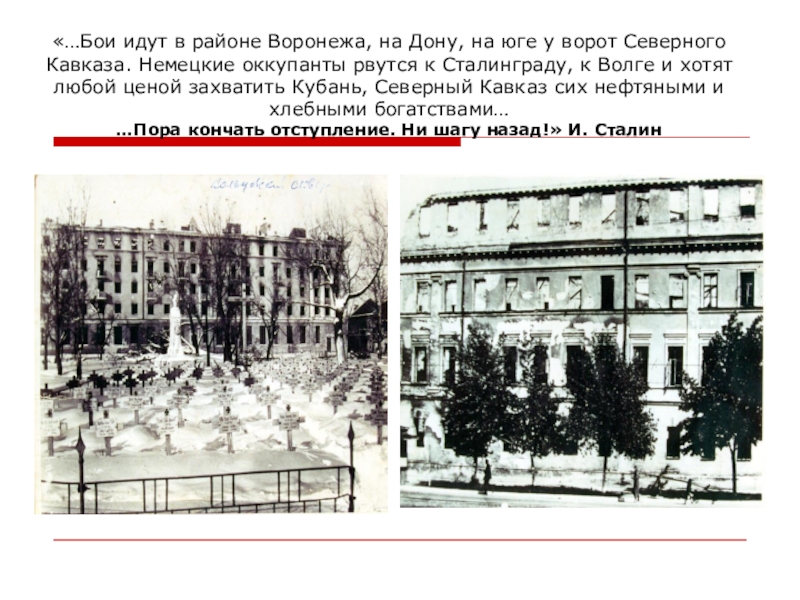 Слайд 7«…Бои идут в районе Воронежа, на Дону, на юге у ворот