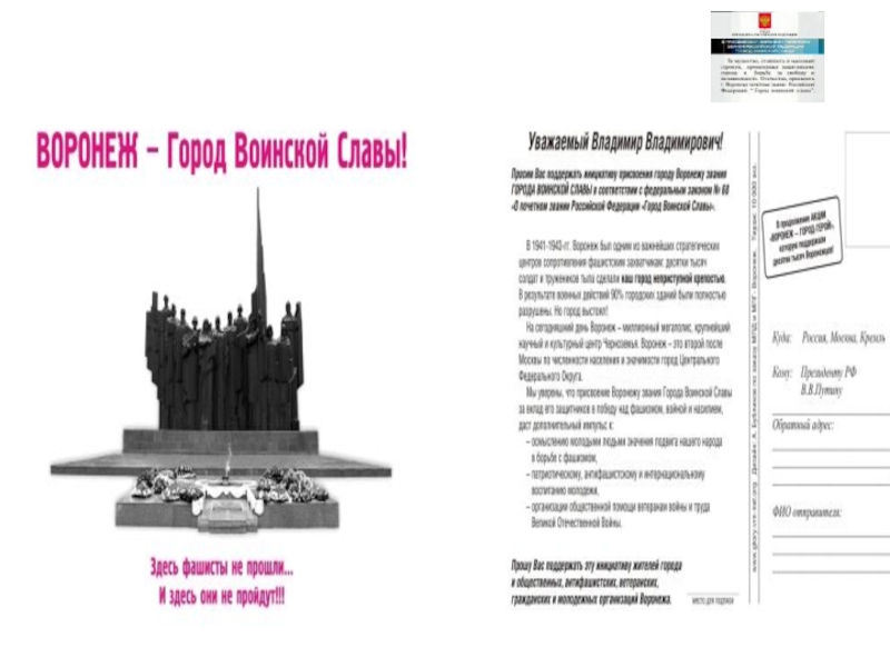 Слайд 1Ко Дню Освобождения города Воронежа от немецко – фашистских оккупантов
