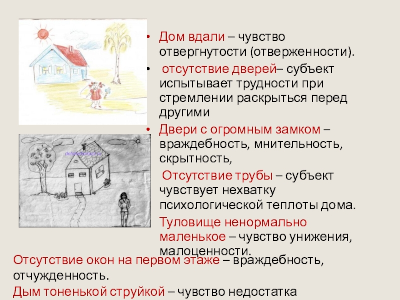 Отсутствие окон на первом этаже – враждебность, отчужденность.