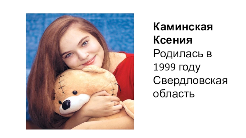 Каминская КсенияРодилась в 1999 году Свердловская область