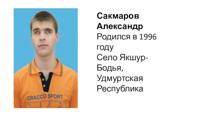 Сакмаров АлександрРодился в 1996 году Село Якшур-Бодья, Удмуртская Республика