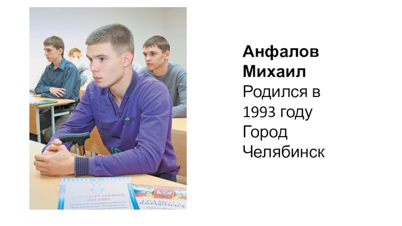 Анфалов МихаилРодился в 1993 году Город Челябинск