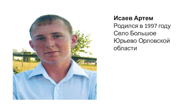 Исаев АртемРодился в 1997 году Село Большое Юрьево Орловской области