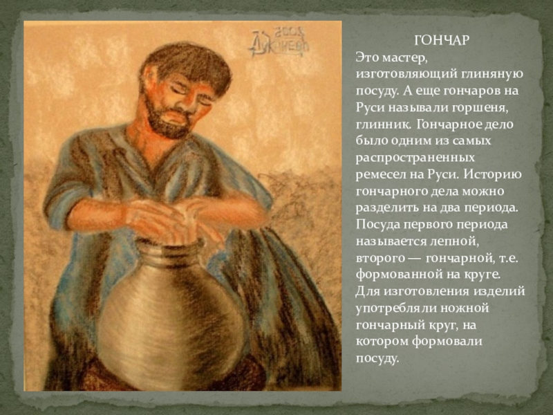 Это мастер, изготовляющий глиняную посуду. А еще гончаров на Руси называли