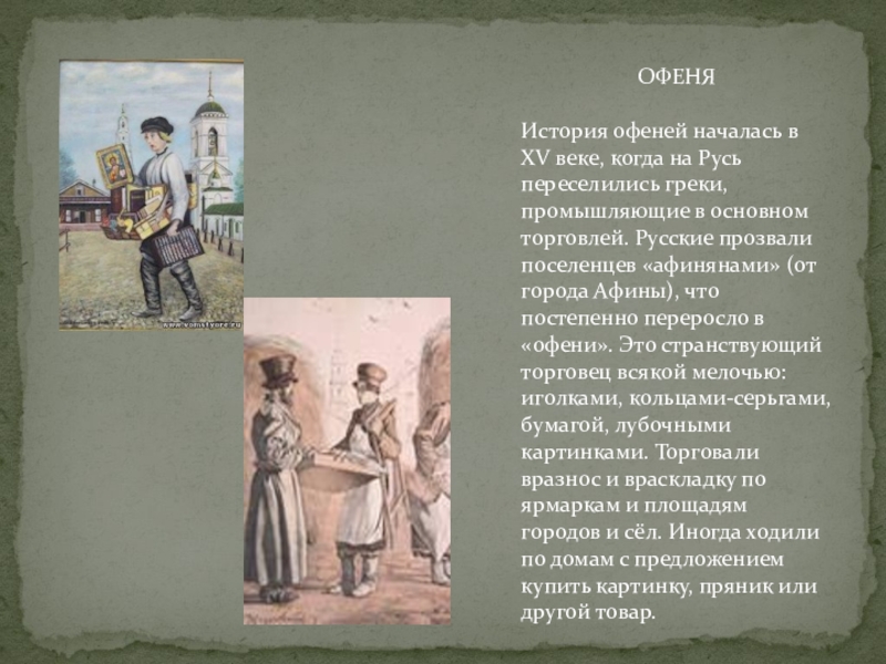 История офеней началась в XV веке, когда на Русь переселились греки,