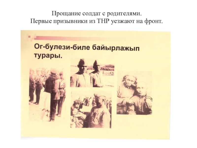 Слайд 3Прощание солдат с родителями. Первые призывники из ТНР уезжают на фронт.