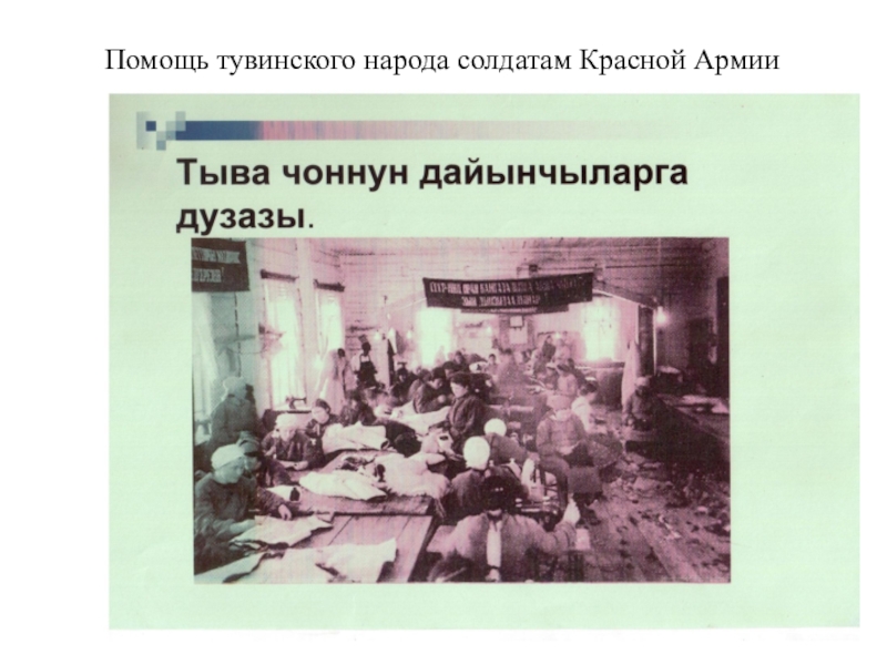 Слайд 16Помощь тувинского народа солдатам Красной Армии