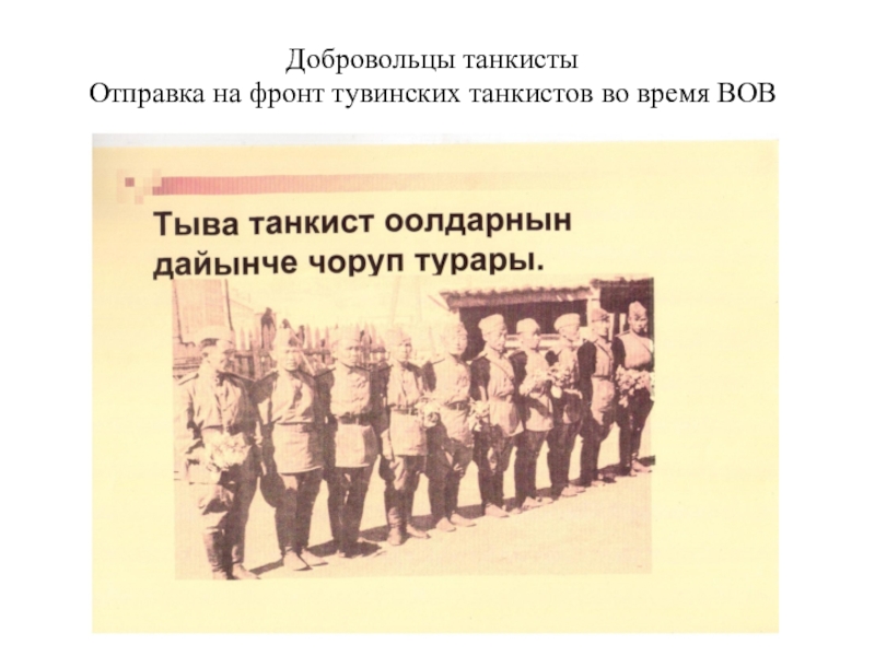 Слайд 6Добровольцы танкисты Отправка на фронт тувинских танкистов во время ВОВ