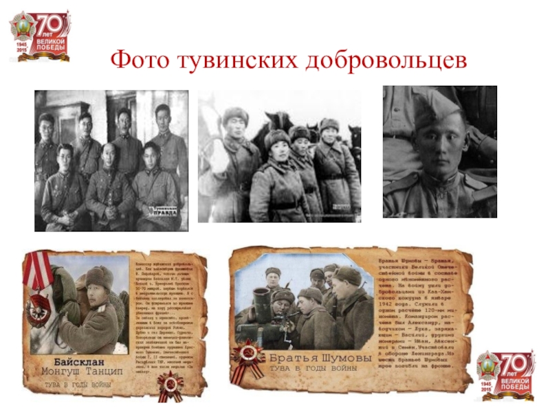 Слайд 1ТУВИНСКИЕ ДОБРОВОЛЬЦЫ В ГОДЫ ВЕЛИКОЙ ОТЕЧЕСТВЕННОЙ ВОЙНЫ