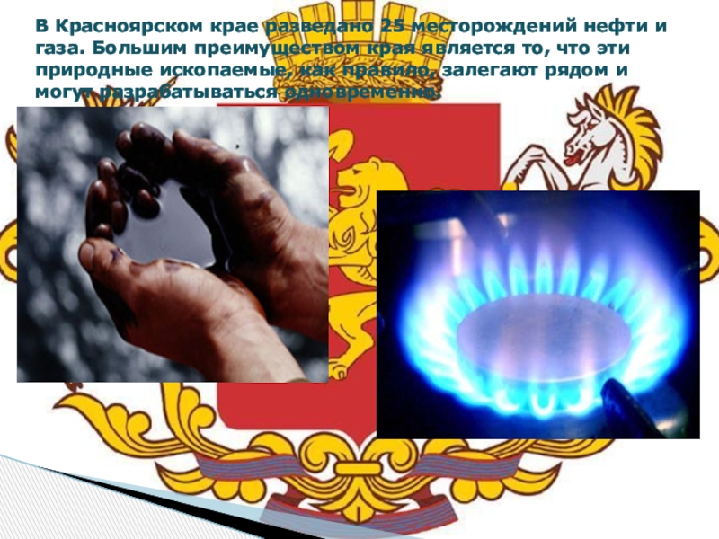 Слайд 22В Красноярском крае разведано 25 месторождений нефти и газа. Большим преимуществом