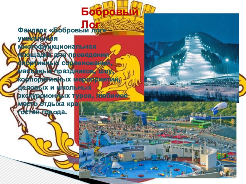 соревнований, массовых праздников, шоу, корпоративных мероприятий, деловых и школьных экскурсионных туров, любимое место отдыха красноярцев и гостей города.