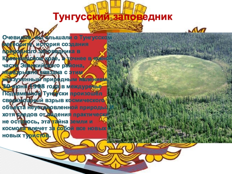 Слайд 20Очевидно, вы слышали о Тунгусском метеорите, история создания природного заповедника в