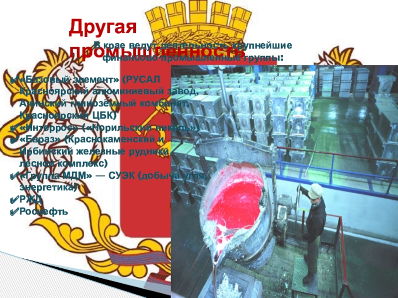 В крае ведут деятельность крупнейшие финансово-промышленные группы: