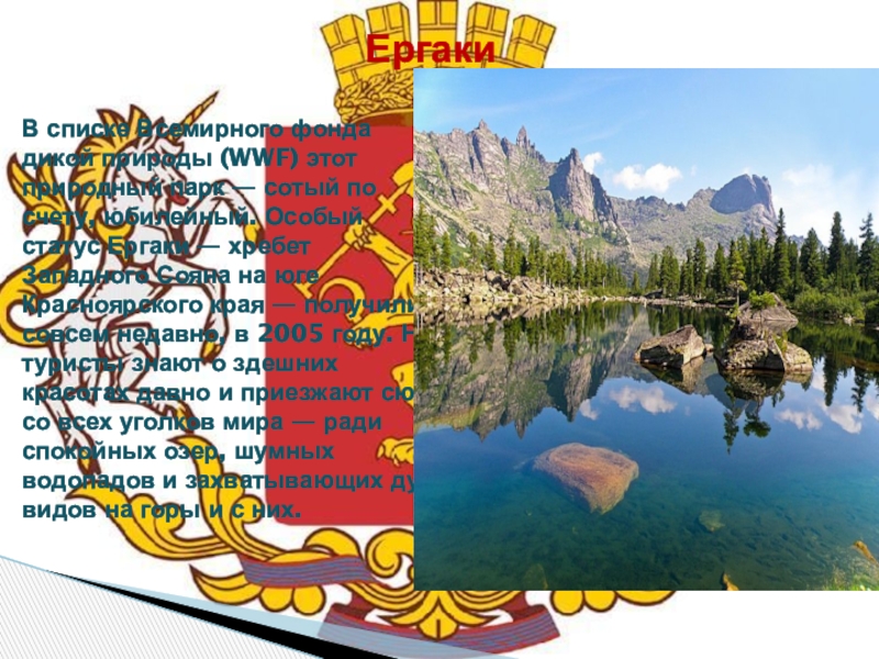 сотый по счету, юбилейный. Особый статус Ергаки — хребет Западного Сояна на юге Красноярского края — получили совсем недавно, в 2005 году. Но туристы знают о здешних красотах давно и приезжают сюда со всех уголков мира — ради спокойных озер, шумных водопадов и захватывающих дух видов на горы и с них.
