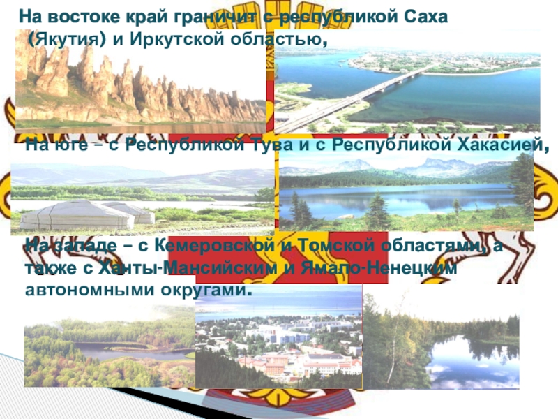 На юге – с Республикой Тува и с Республикой Хакасией,