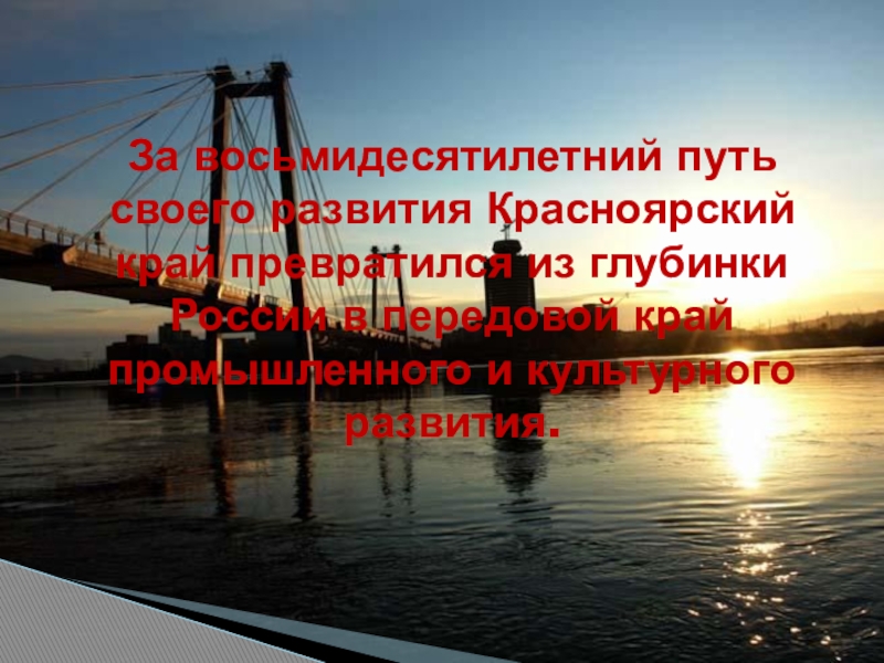 Слайд 41За восьмидесятилетний путь своего развития Красноярский край превратился из глубинки России