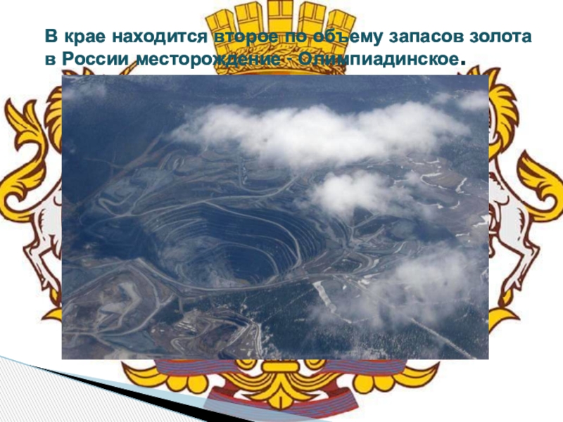 Слайд 24В крае находится второе по объему запасов золота в России месторождение