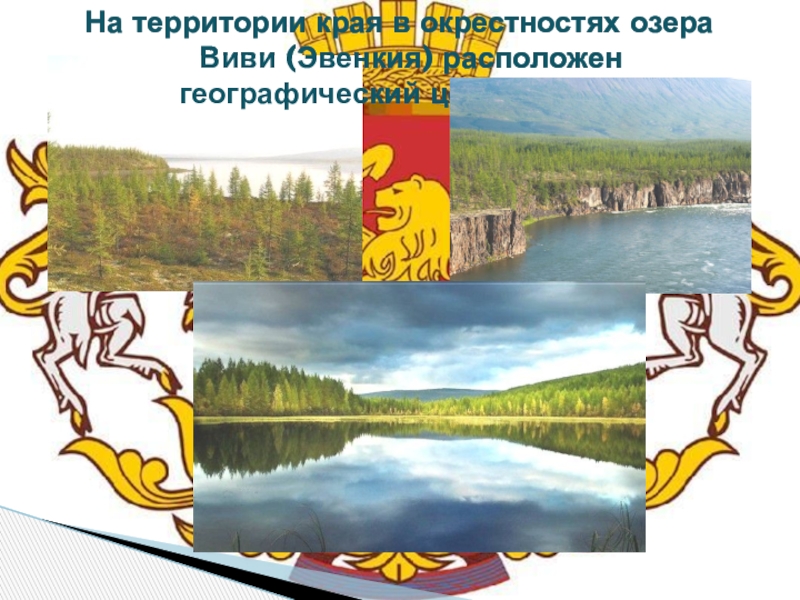 Слайд 6На территории края в окрестностях озера Виви (Эвенкия) расположен географический центр