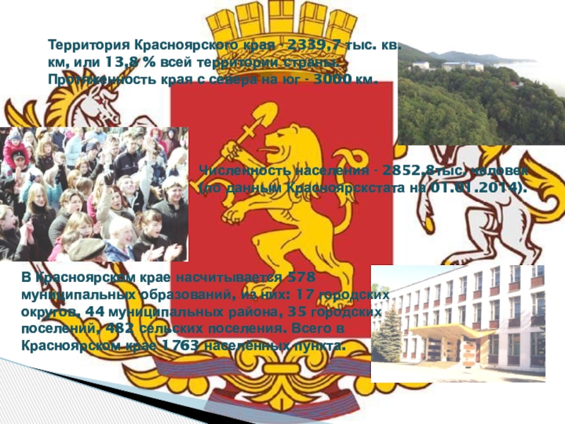 Слайд 8Территория Красноярского края - 2339,7 тыс. кв. км, или 13,8 %