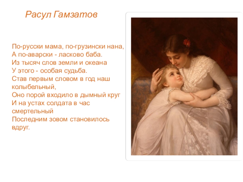 Слайд 14«Берегите матерей» Расул Гамзатов