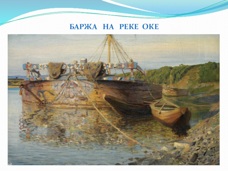 Слайд 7Баржа на реке Оке