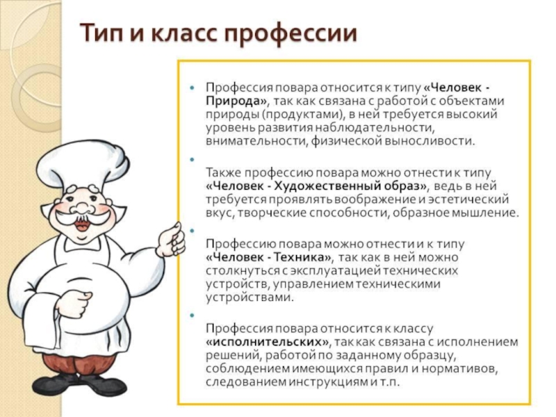 Презентация по внеурочной деятельности на тему : Профессия повар. Педагогика
