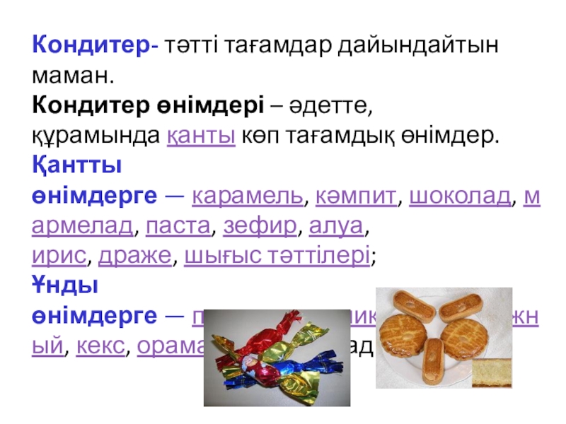 Слайд 4Кондитер- тәтті тағамдар дайындайтын маман.